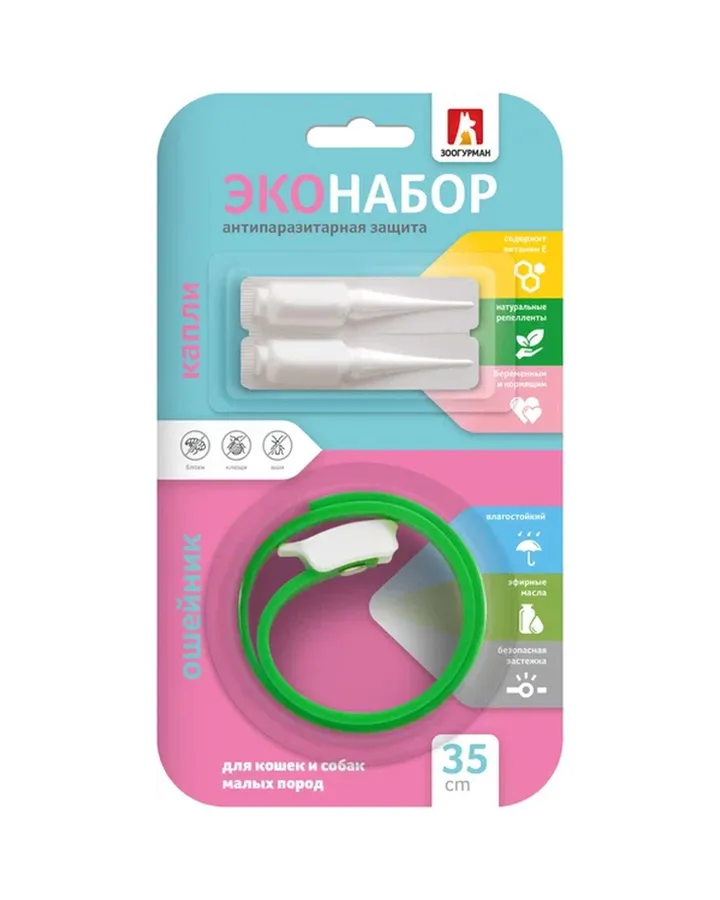 Эконабор Зоогурман антипаразитарный для кошек и собак ошейник и капли 35см