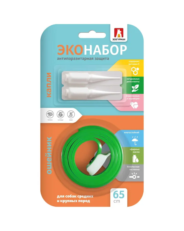 Эконабор Зоогурман антипаразитарный для собак ошейник и капли 65см