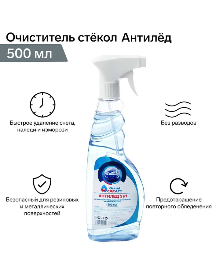 Очиститель стёкол Grand Caratt зимний Антилёд 3в1 спрей 100мл 7043746