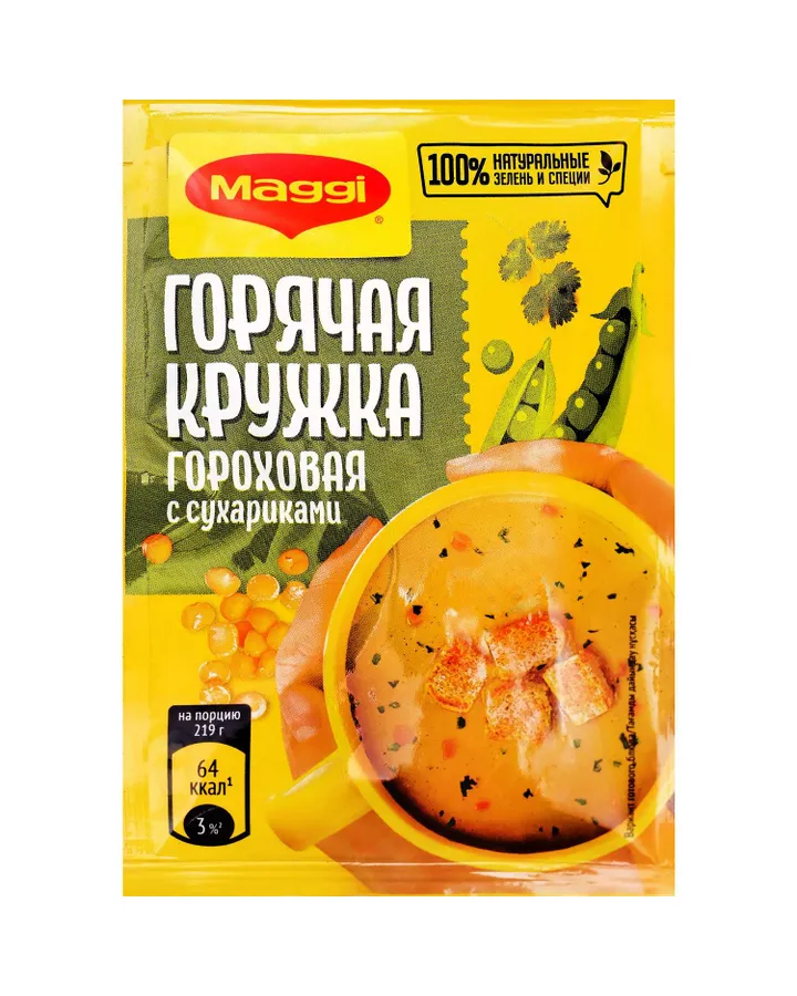 Суп моментального приготовления Maggi Горячая кружка Гороховая с сухариками 19г