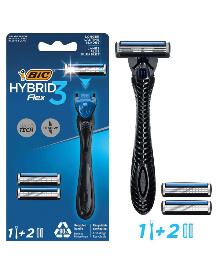 Бритва мужская BIC Flex 3 Hybrid 1 ручка и 2 сменные кассеты