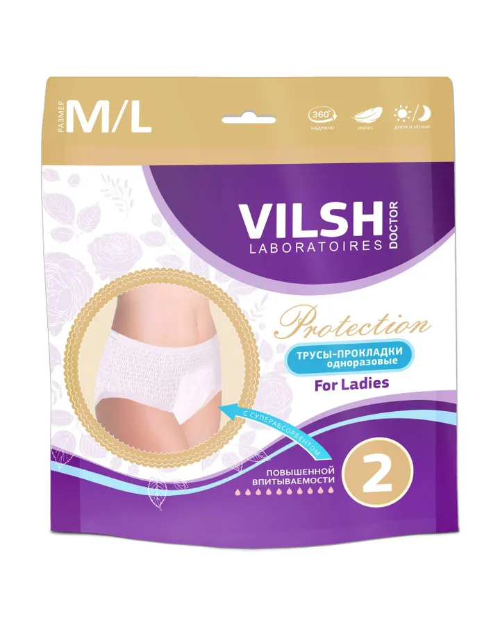Трусы-прокладки Doctor Vilsh Laboratoires повышенной впитываемости для взрослых Доктор Вилш M/L 2шт
