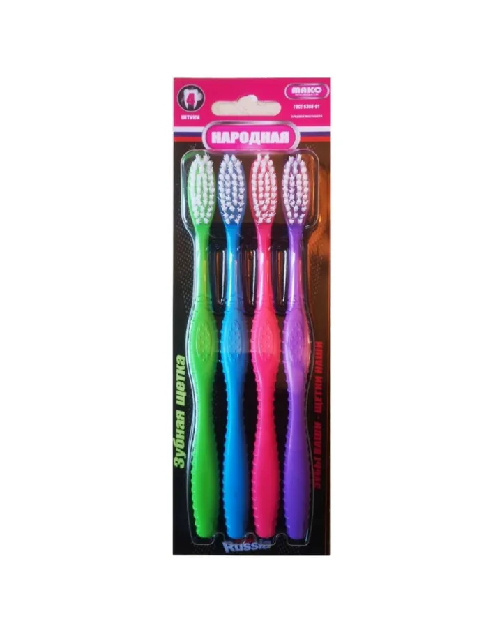 Зубная щетка классическая ЛЕНПЛАСТПОЛИМЕР 4 шт.