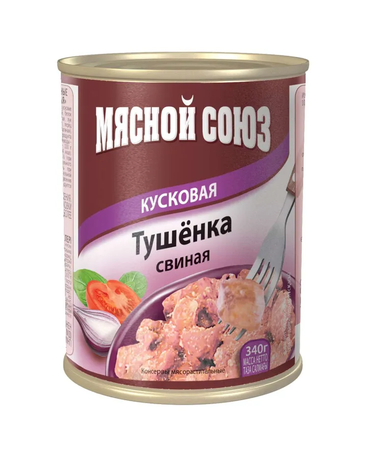 Консервы Мясной союз Тушенка кусковая свиная 340г