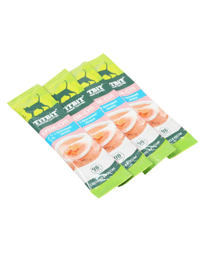 Лакомство для кошек TITBIT 10г*4 с кусочками лосося крем-суп