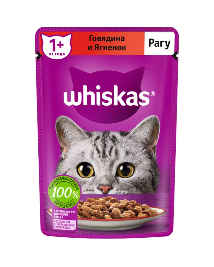 Корм для кошек Whiskas рагу с говядиной и ягненком 75г