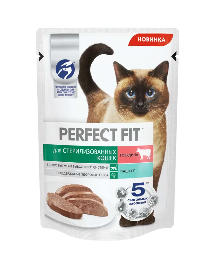 Корм для стерилизованных кошек PerfectFit паштет с говядиной 75г