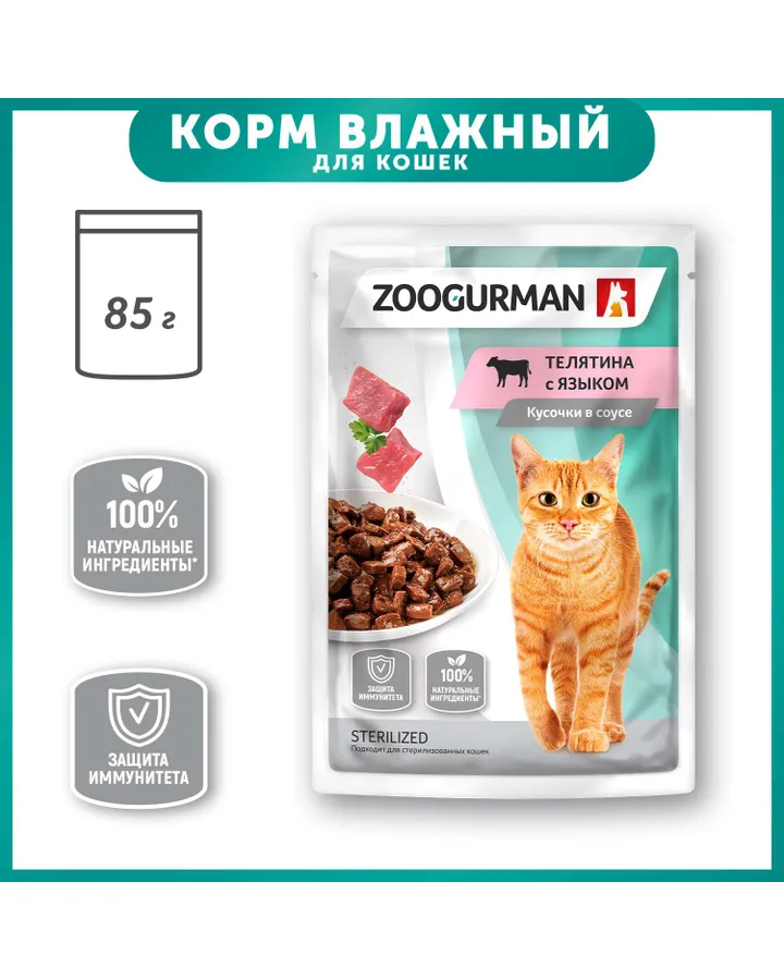 Корм для кошек Зоогурман 85г телятина с языком