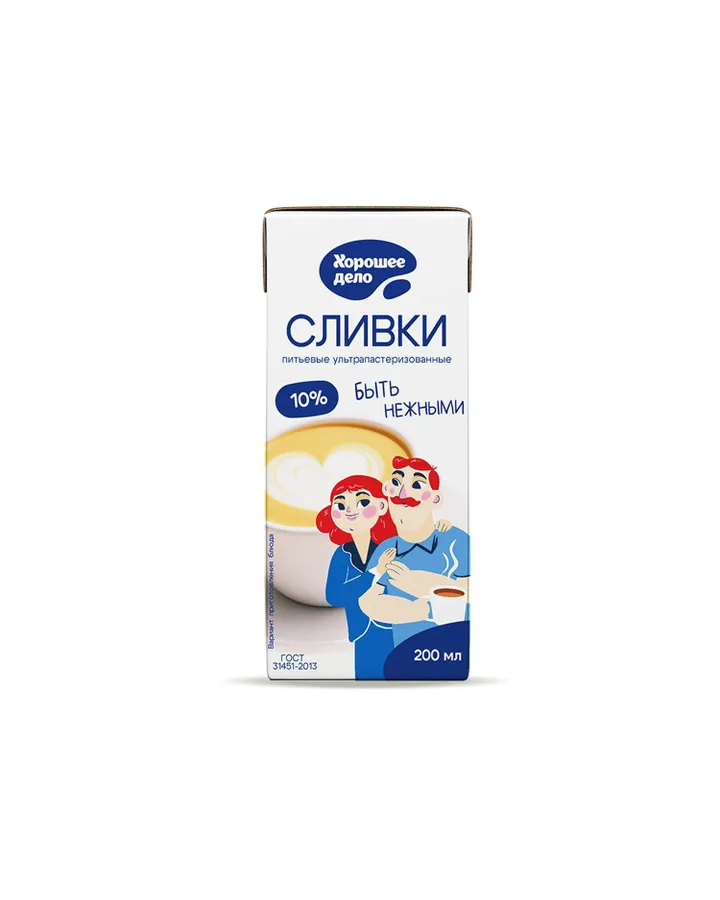 Сливки . 10% 0.2л питьевые ультрапастеризованные