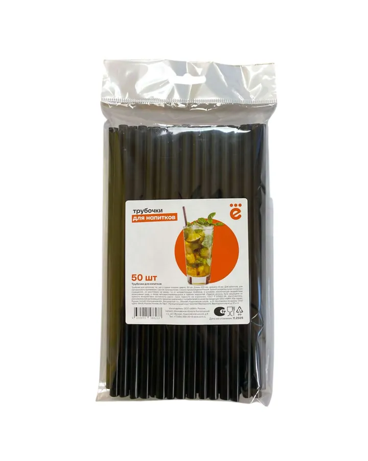 Трубочки для напитков АВМ/AVM 200*8мм 50шт черные