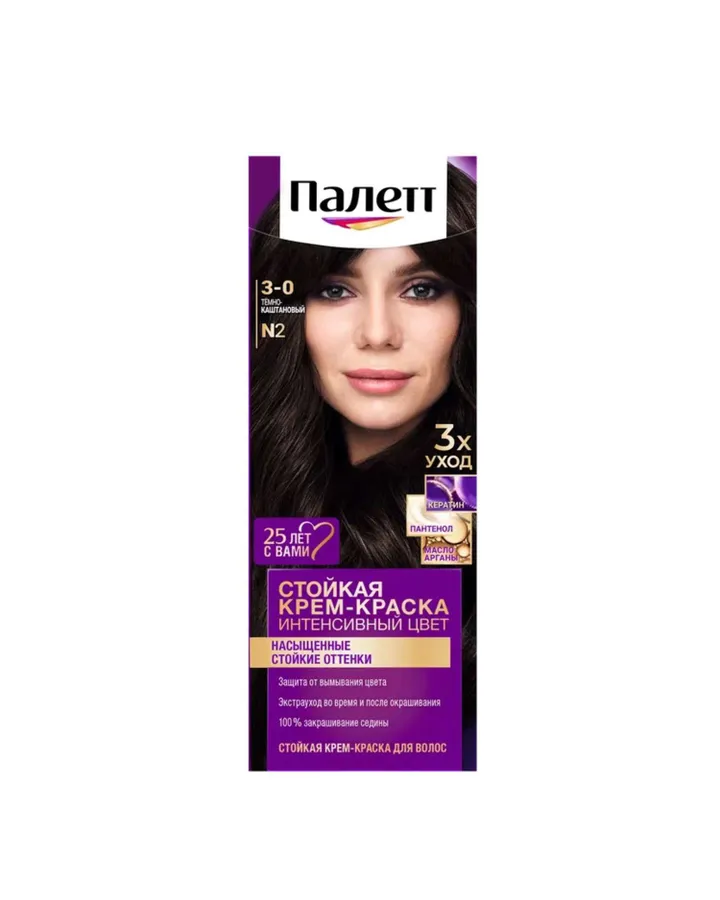 Стойкая крем-краска для волос Палетт Интенсивный цвет 3-0 (N2) Тёмно-каштановый 110мл