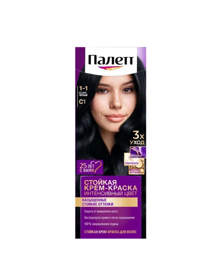 Стойкая крем-краска для волос Палетт Интенсивный цвет 1-1 (C1) Иссиня-черный 110мл