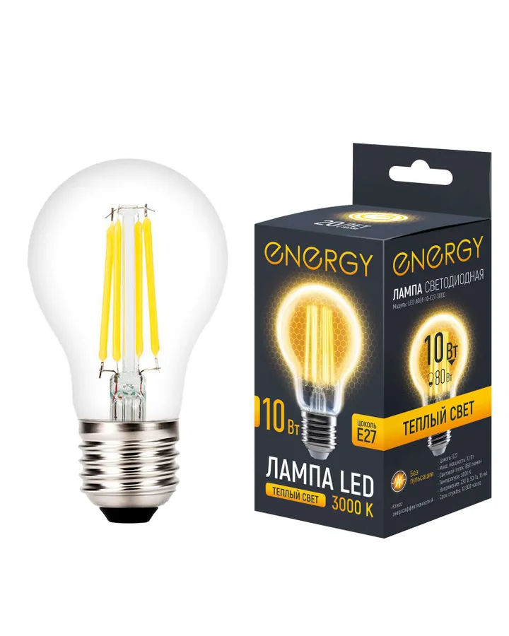 Лампа светодиодная Energy LED А60F-10-E27-3000