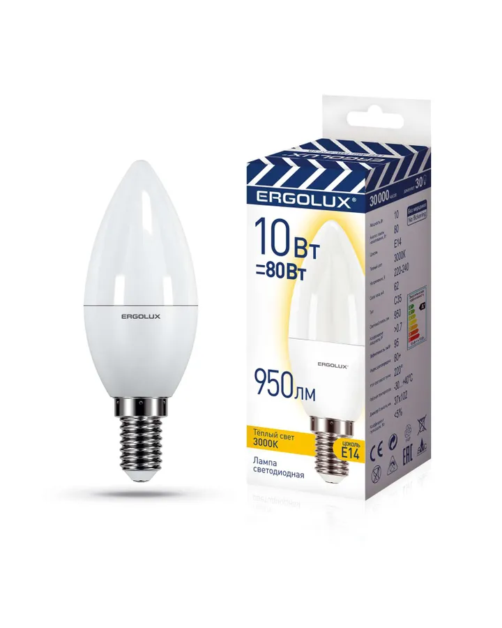 Лампочка Ergolux Свеча LED-C35-10W-E14-3K