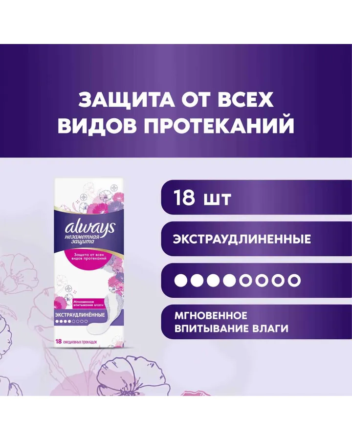 Прокладки гигиенические ALWAYS Незаметная защита Экстраудлиненные На каждый день 18шт