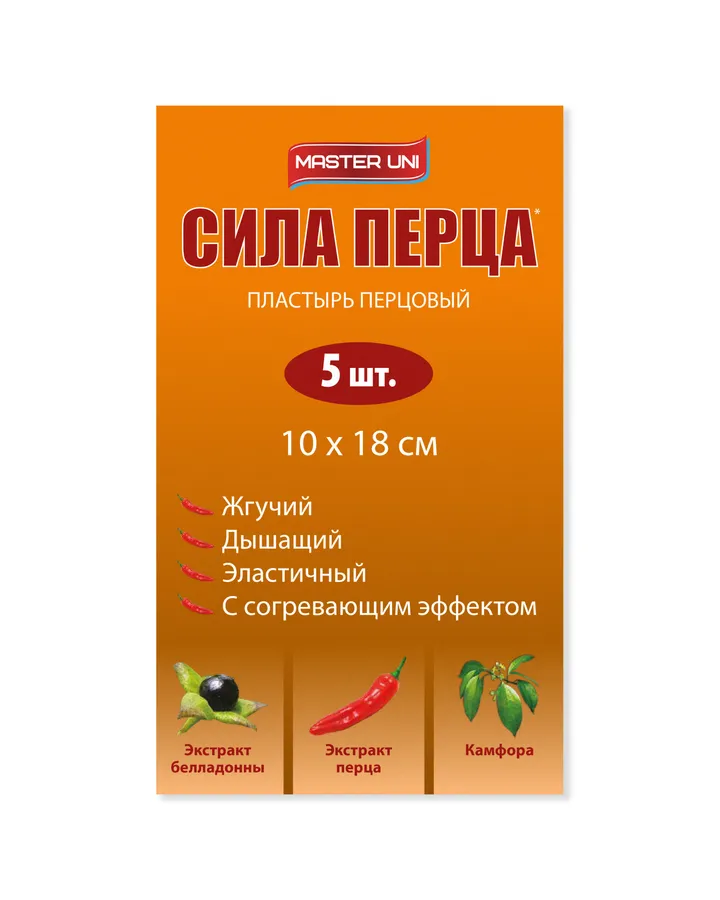 Пластырь медицинский Master Uni перцовый Сила Перца 10*18см 5шт