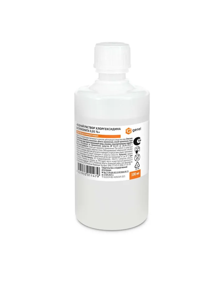 5Средство дезинфицирующее G genel Хлоргексидина биглюконата 0.05% 100млНичем не отличается от аптечного, только цена выгоднее в разы.