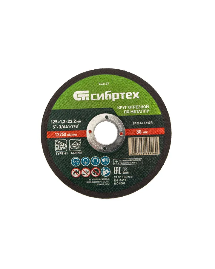 Круг отрезной по металлу сибртех 125*1.2*22.2мм 84%A+16%B