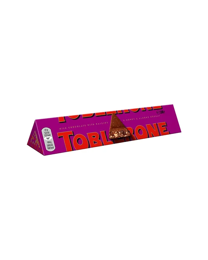 Шоколад молочный и темный Toblerone с медово-миндальной нугой с изюмом и орехом 100г