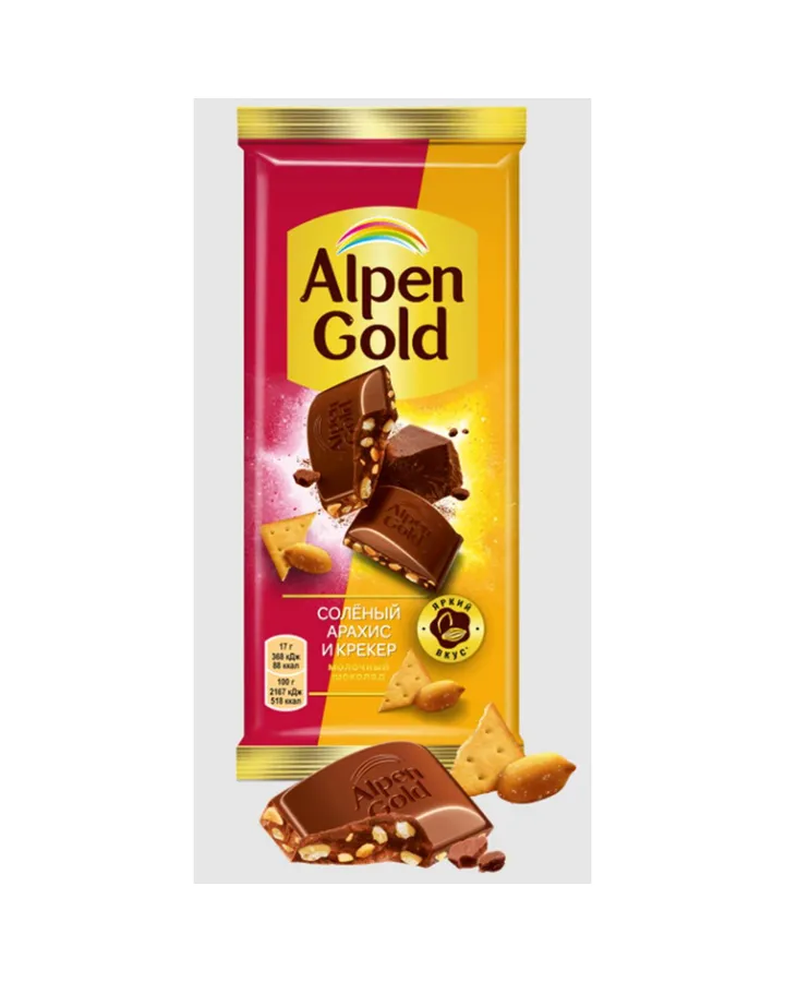 Шоколад Alpen Gold молочный с солёным арахисом и крекером 80г