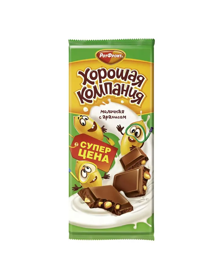 5Кондитерская плитка РотФронт Хорошая компания молочная с арахисом 80гВкусный шоколад по приятной цене