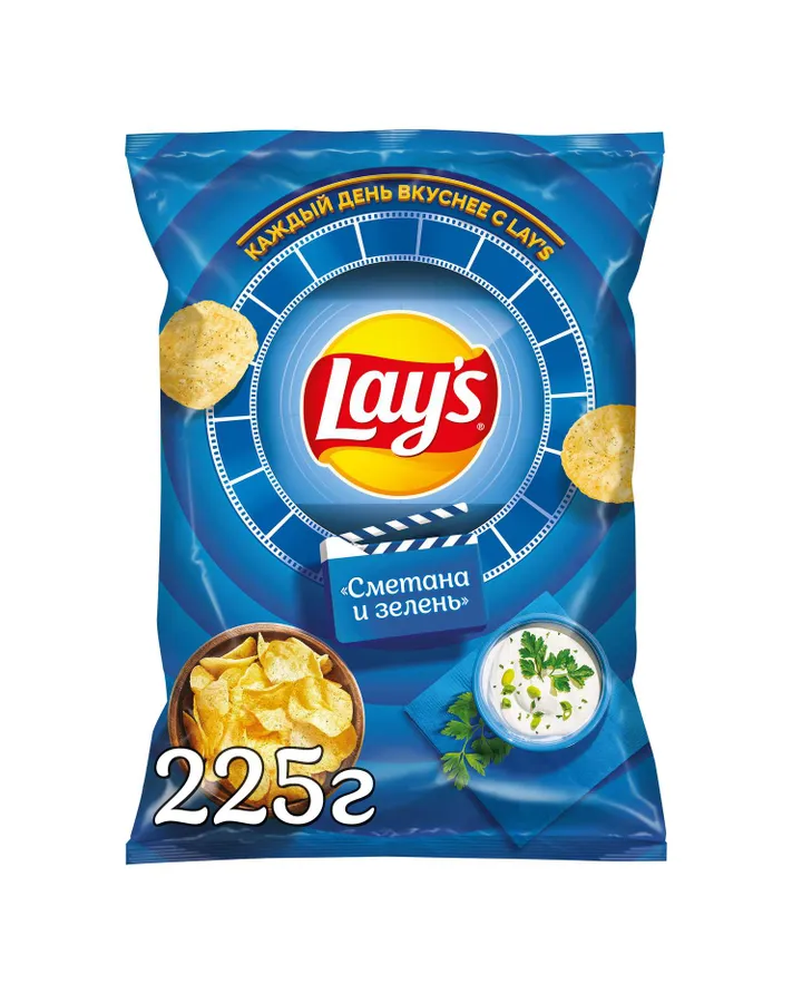Чипсы из натурального картофеля Lays со вкусом сметаны и зелени 225г