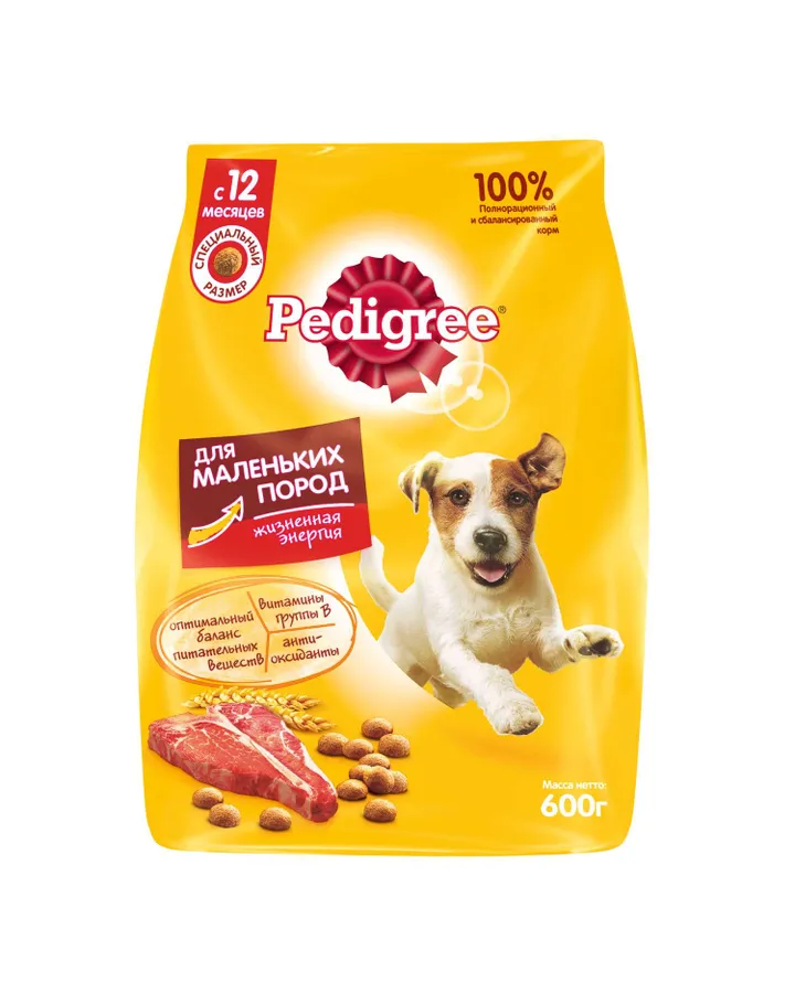 Корм для собак Pedigree для мелких пород с говядиной сухой 600г