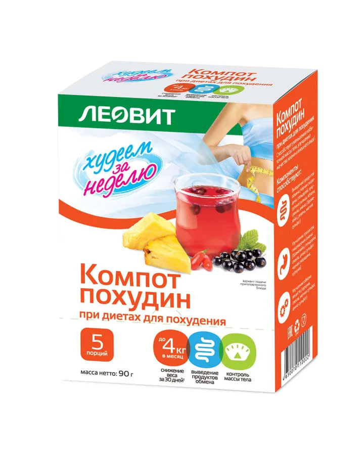 Компот Леовит Худеем за неделю Похудин 90г 5пакетов
