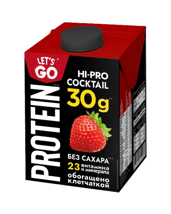 Коктейль молочный Lets Go Клубника 0% безлактозный высокобелковый 500г