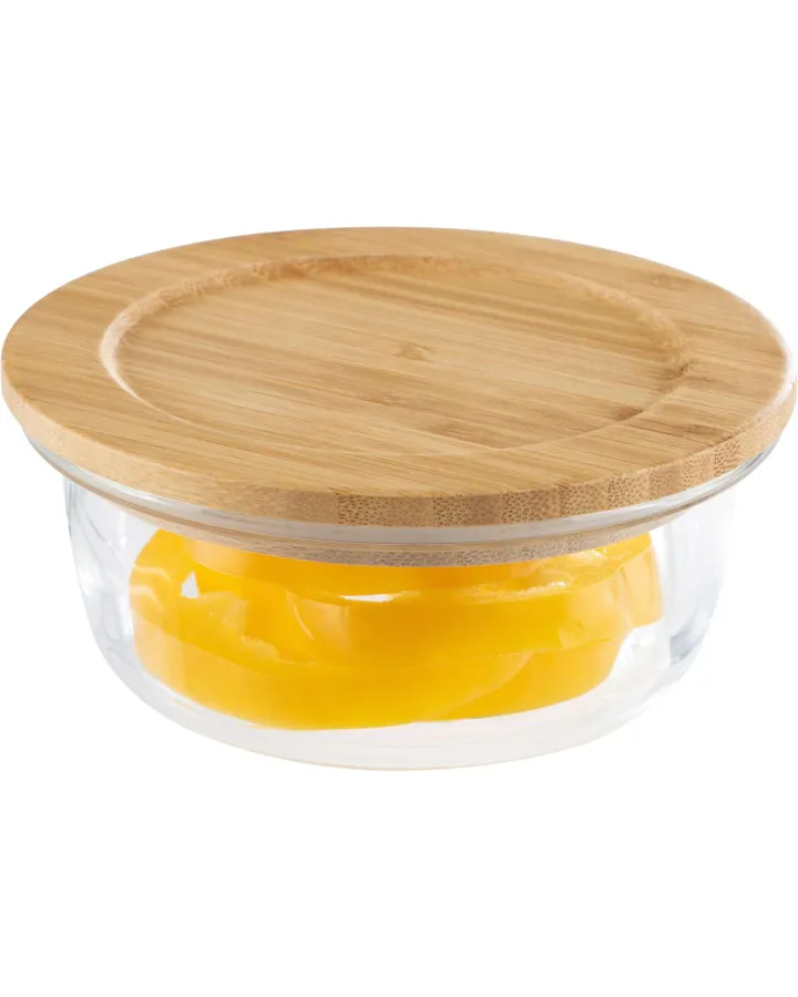 Контейнер Leonord из жаропрочного стекла с крышкой из бамбука круглый 400мл