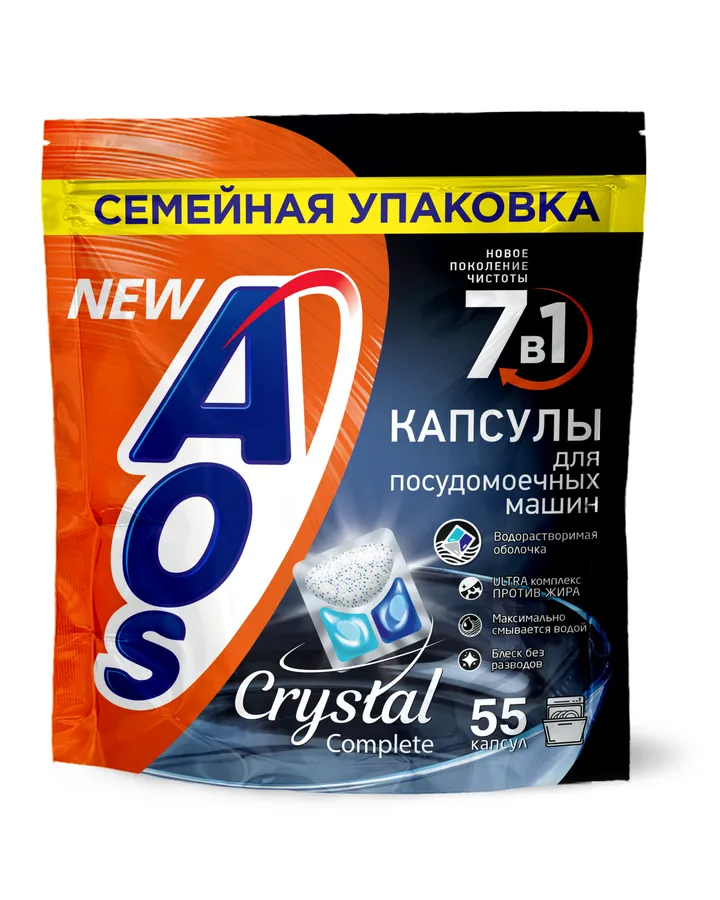 Таблетки для посудомоечных машин AOS Crystal Complete 55 шт.