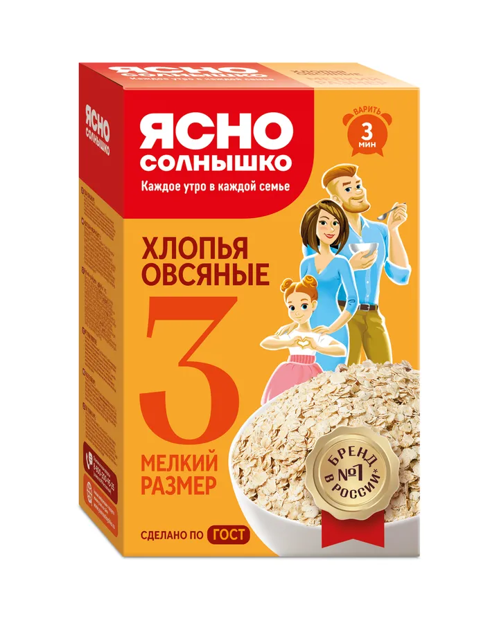 Хлопья Ясно Солнышко овсяные №3 мелкий размер 350г
