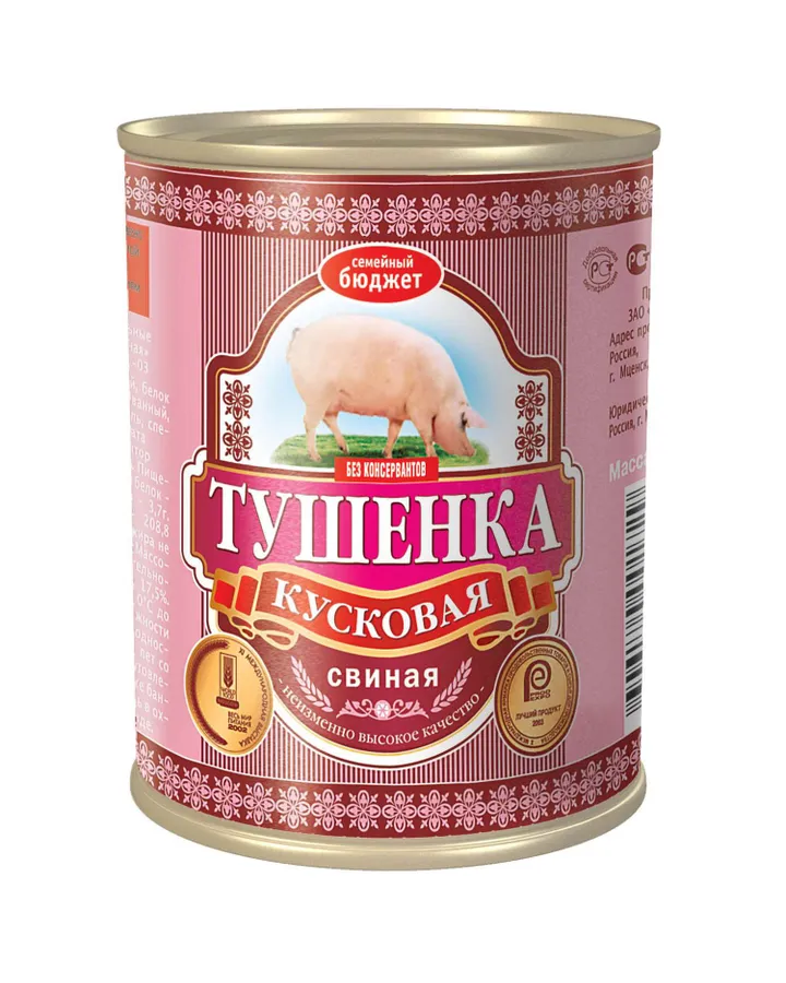 Консервы Семейный бюджет Свинина тушеная высший сорт 338г