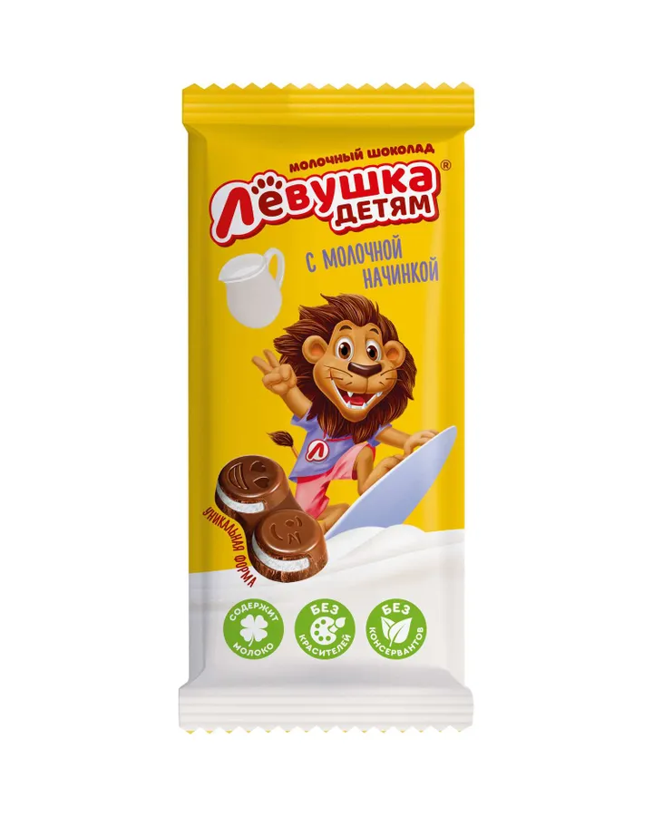 Шоколад молочный Левушка детям с молочной начинкой 85г