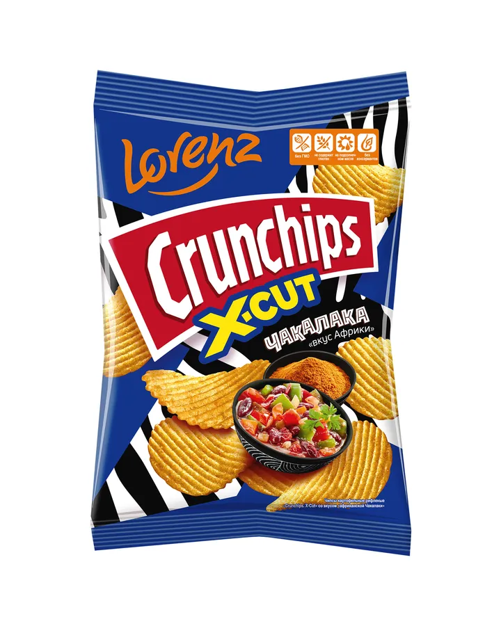 Чипсы рифленые картофельные Lorenz Crunchips X-Cut со вкусом африканской Чакалаки 70г