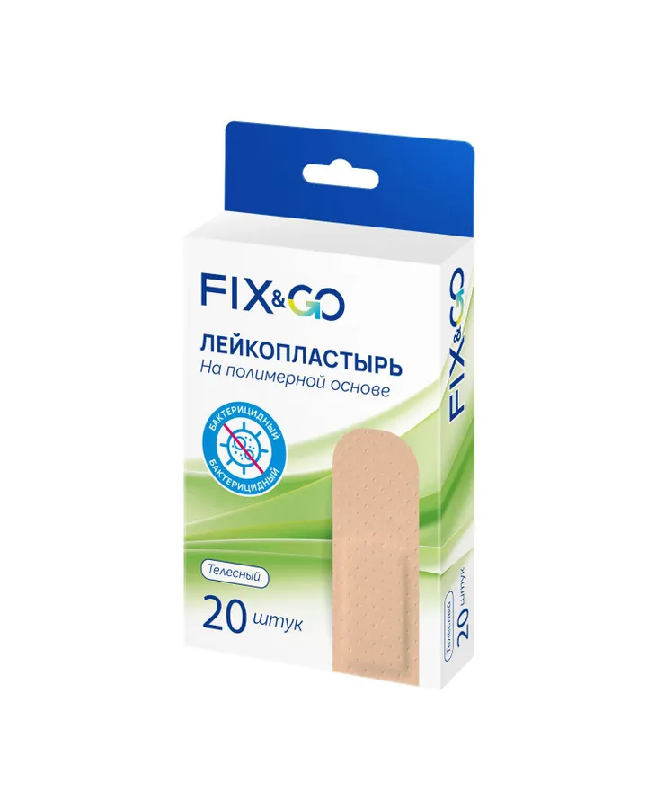 Лейкопластырь медицинский бактерицидный FixGo на полимерной основе телесный 19*72мм 20шт