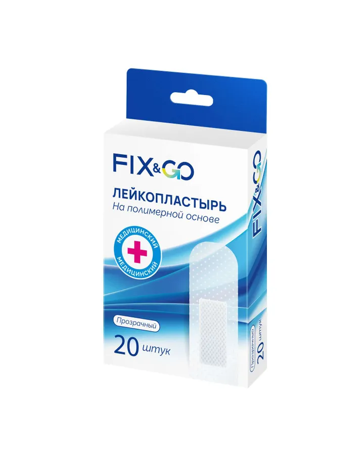 Лейкопластырь медицинский FixGo на полимерной основе прозрачный 19*72мм 20шт