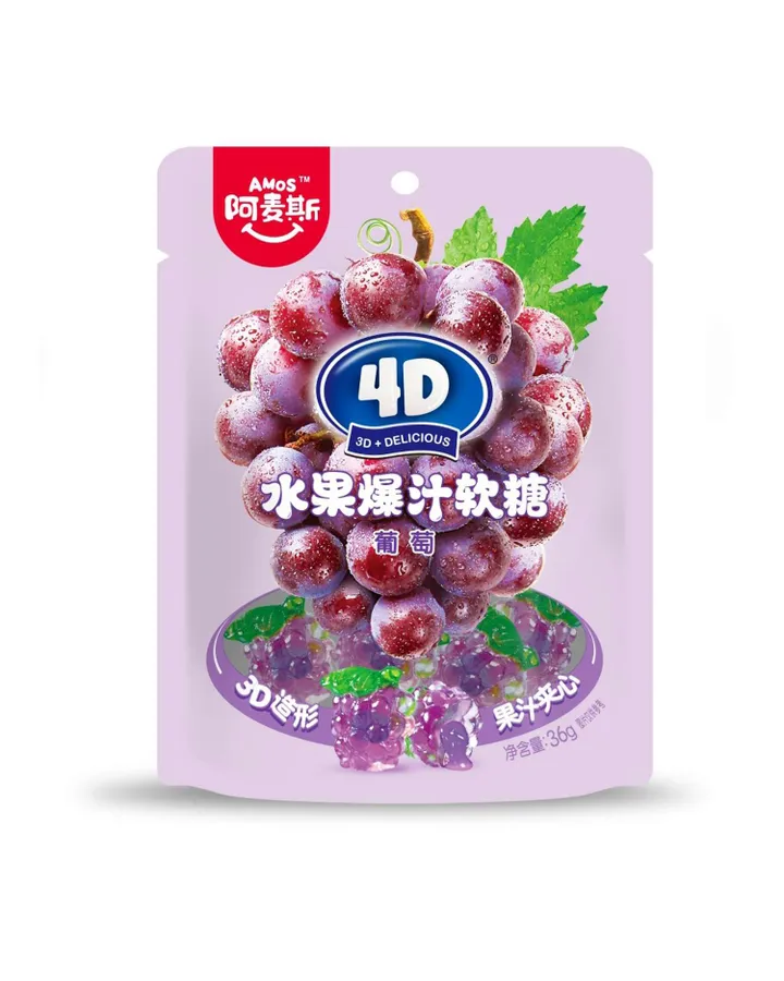 Конфеты AMOS 4D жевательные с соком винограда 36г