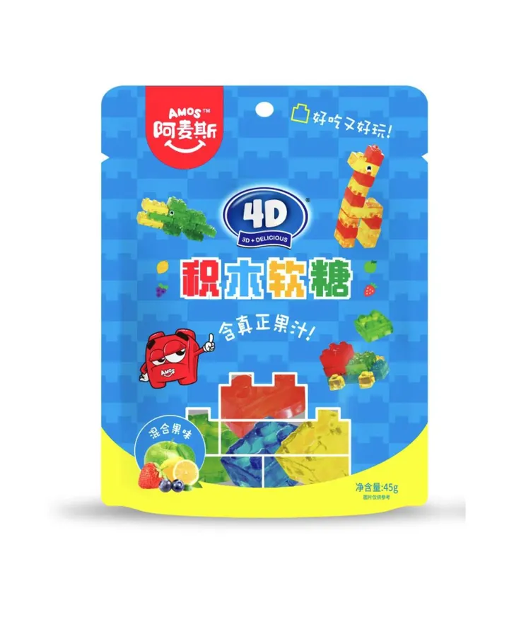 Конфеты AMOS 4D Лего жевательные с соком 45г