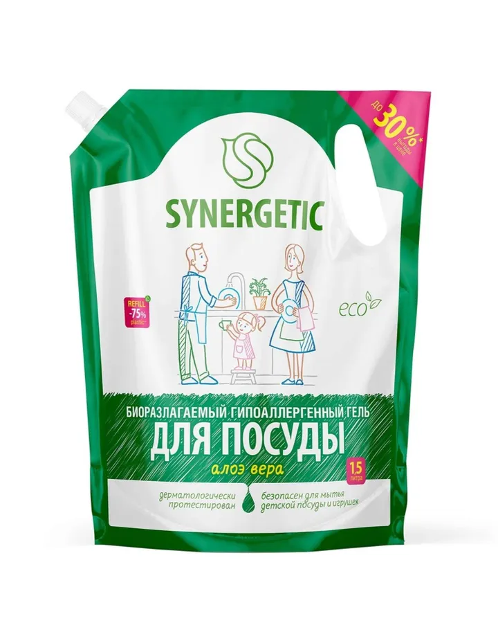 Средство для мытья посуды Synergetic с ароматом Алоэ вера 1500 мл