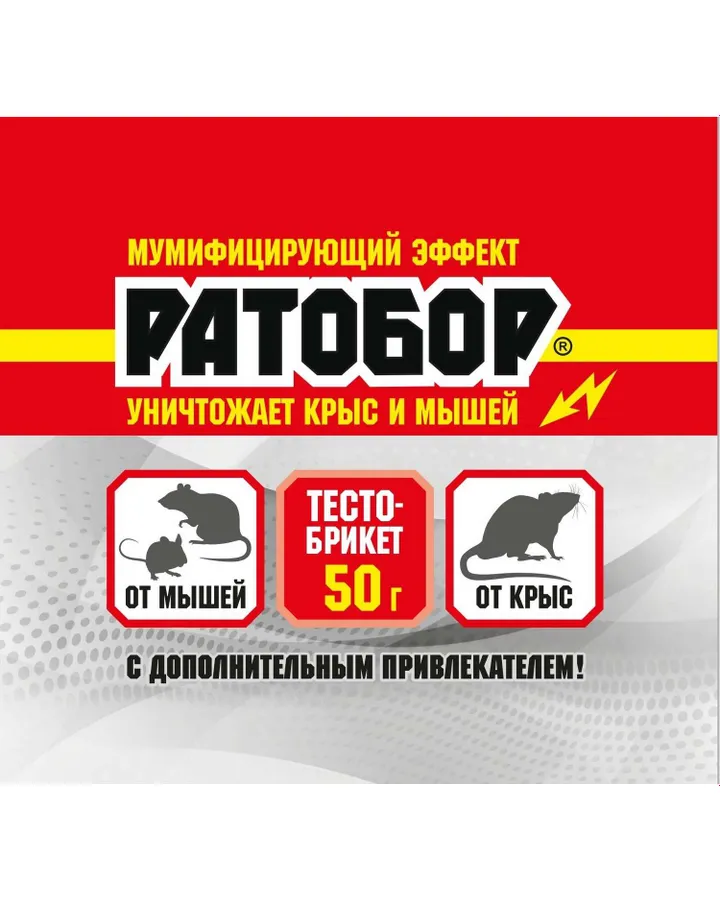 Тесто брикет . для уничтожения крыс и мышей Ратобор пакет 50г