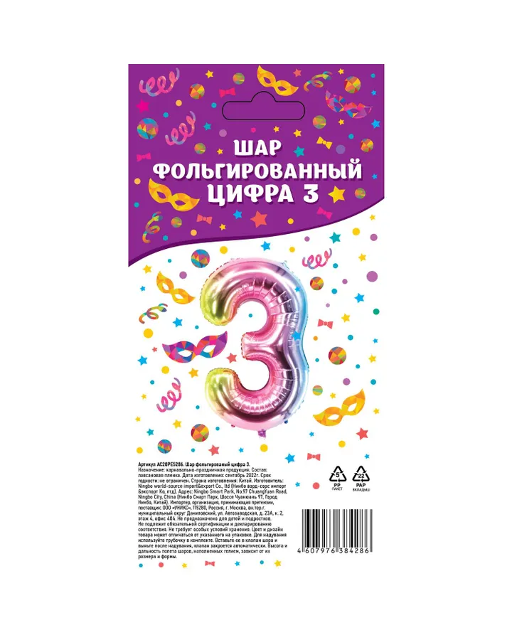 Шар фольгированный . Цифра 3 AC20PE5286