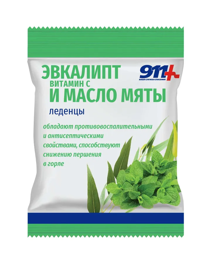Леденцы для горла 911 Экстренная помощь Ваша служба спасения эвкалипт витамин С масло мяты 50г