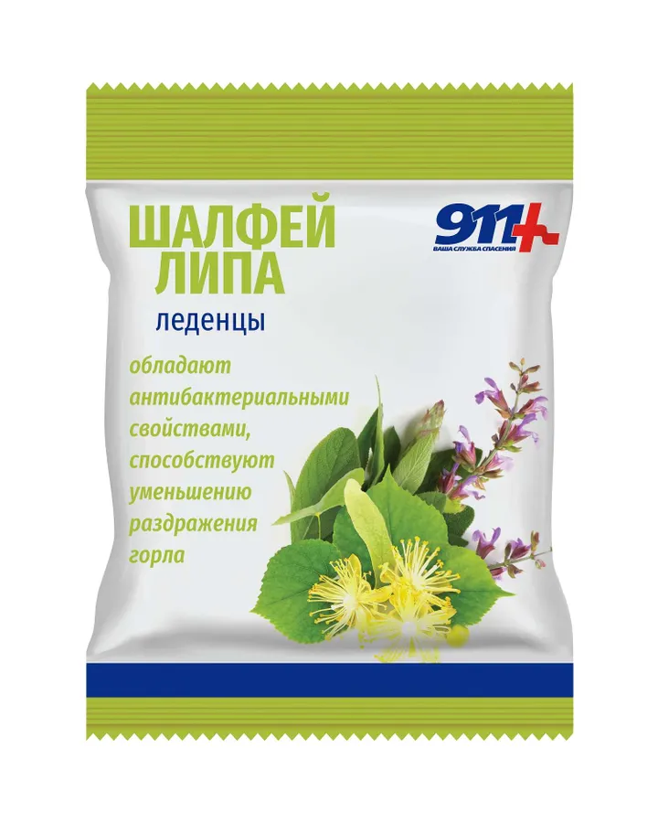 Леденцы для горла 911 Экстренная помощь Ваша служба спасения шалфей липа витамин С 50г
