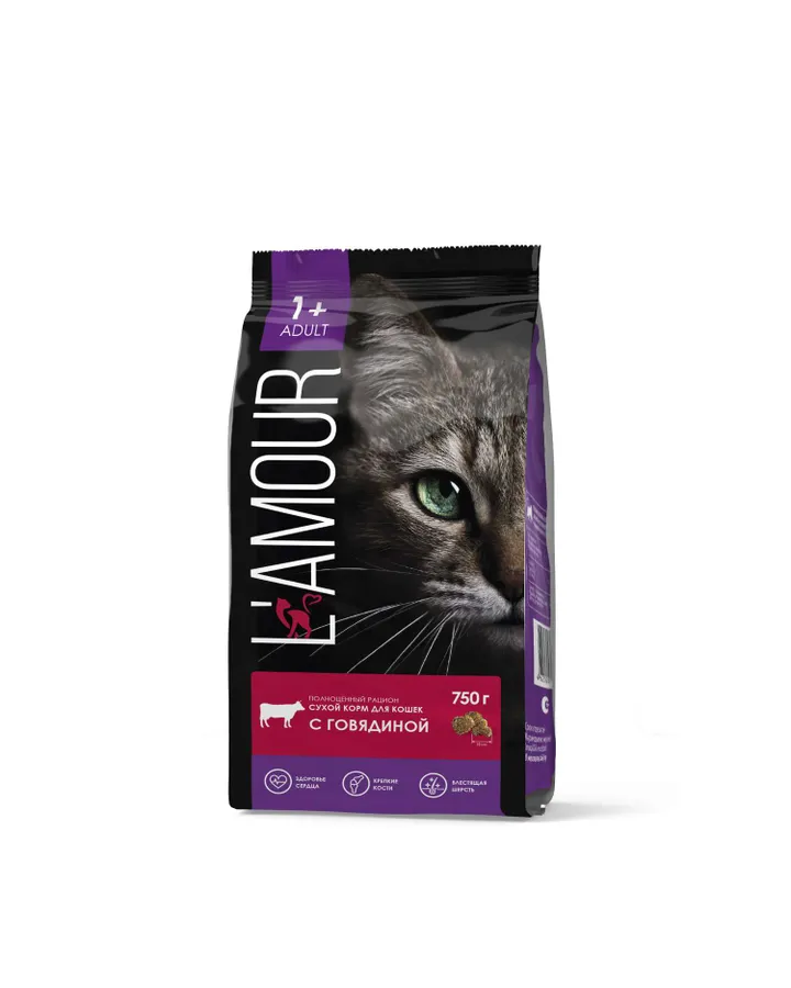 Корм для кошек LAMOUR сухой с говядиной 750г