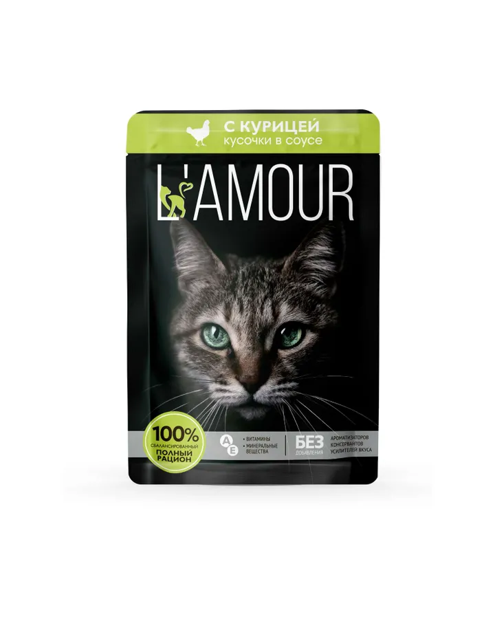 Корм для кошек LAMOUR влажный с курицей в соусе 75г