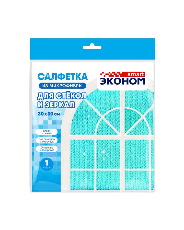 Салфетка для стекол и зеркал ЭКОНОМ Smart из микрофибры 1шт