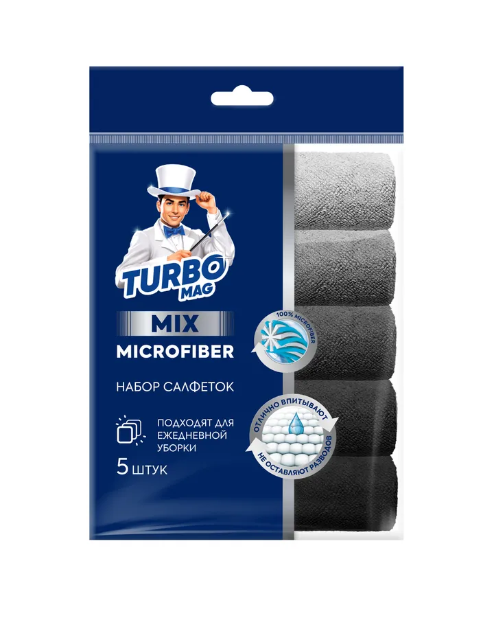 Набор салфеток универсальных TURBOmag микрофибра 30*30см 5шт