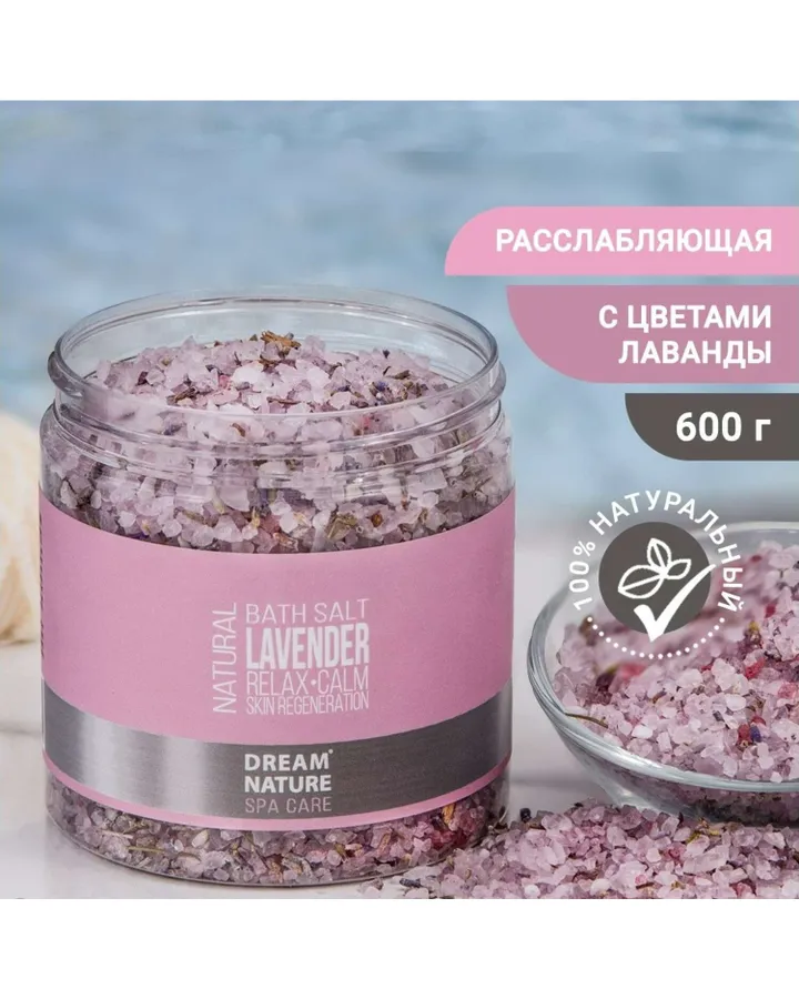 4Соль для ванн Dream Nature лаванда 500гСоль хорошая, только не вся растворяется, остаются на дне ванны небольшие частицы