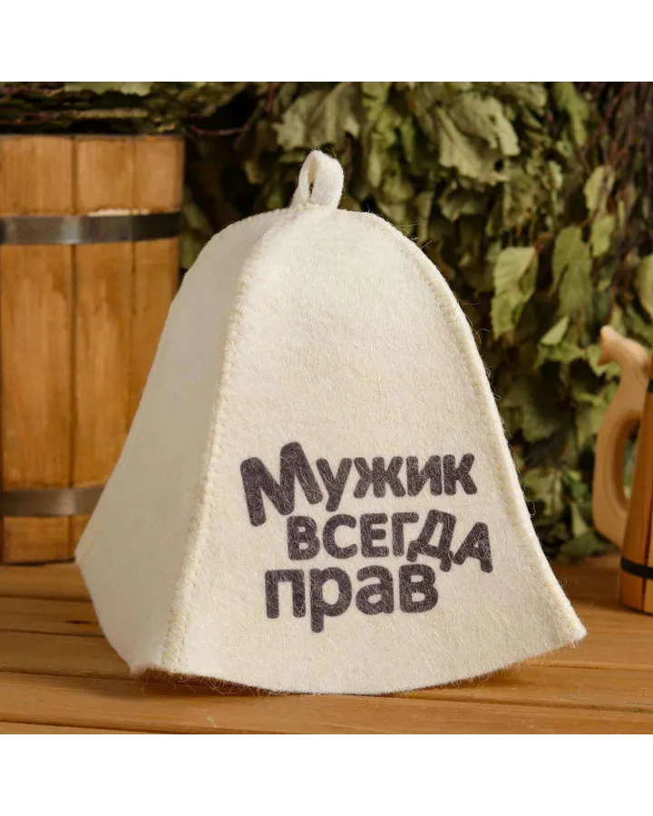 Шапка для бани . Мужик всегда прав с принтом белая 5312255